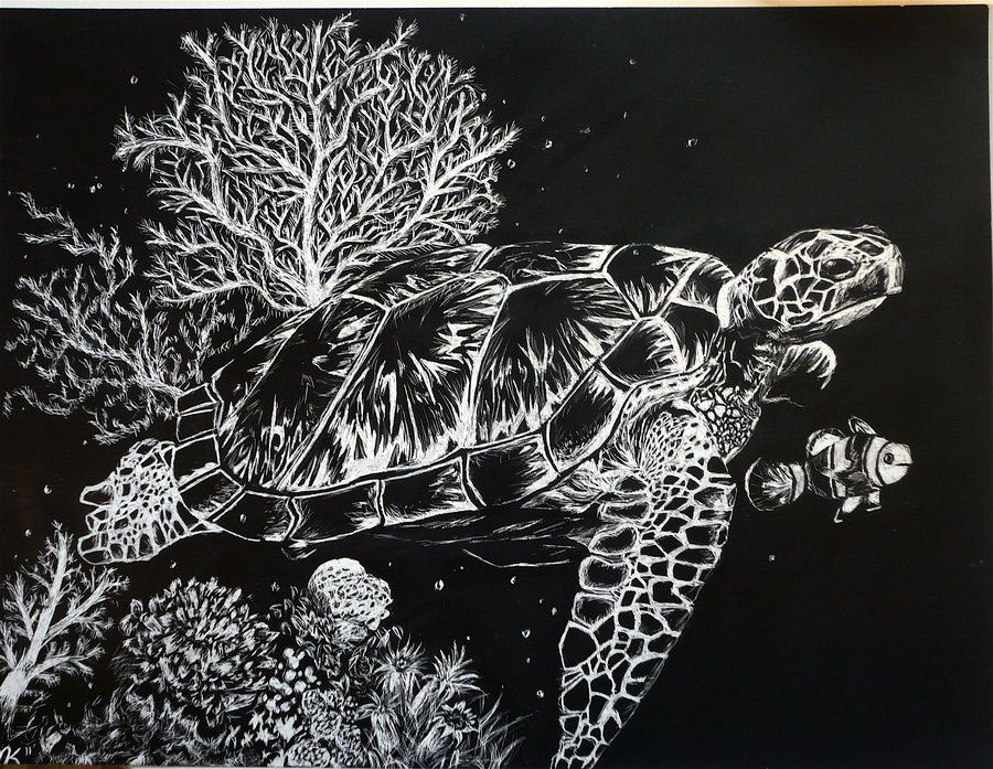 Рисунки в технике граттаж оригинальны за счёт своей контрастности
