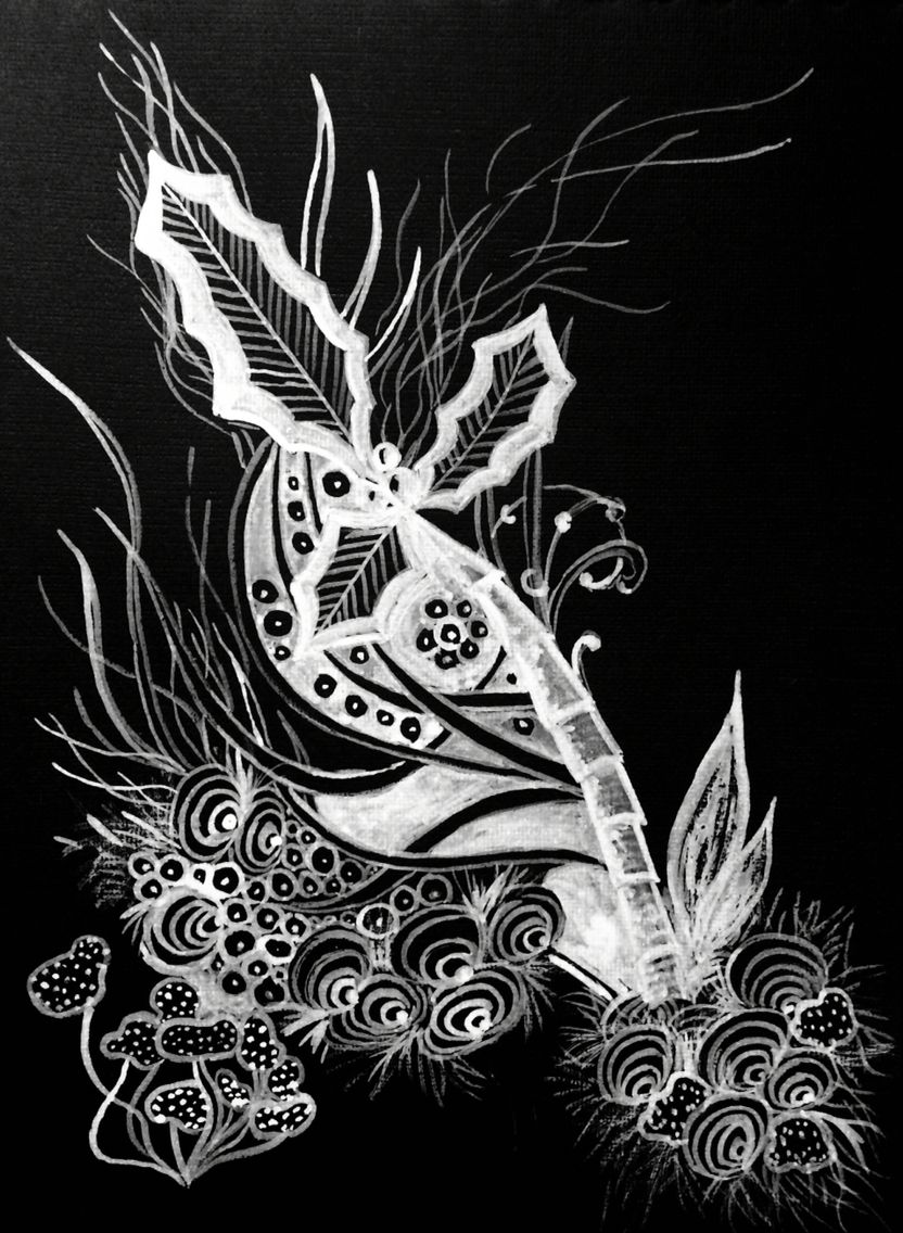 После этих манипуляций основа густо закрашивается чёрной гуашью или тушью. Для однородности и предотвращения скатывания в краску следует добавить пару капель жидкого мыла. Далее лист бумаги нужно оставить до его полного высыхания.