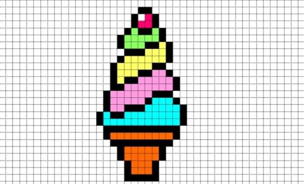 Например, сделать рисунок мороженого по клеточкам, или животных, того же самого котика, или целые композиционные иллюстрации для личного дневника.