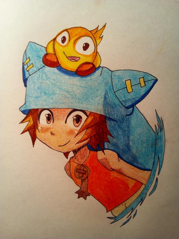 Ну вот и все, наш персонаж из Вакфу практически готов, и осталось только раскрасить его. Шляпа должна быть синяя, а майка – ярко-желтого цвета. Волосы у Юго лучше нарисовать светлыми.