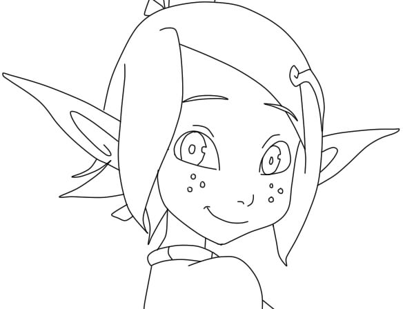 Так как Евангелина из Вакфу эльфийка, нам просто необходимо нарисовать ей длинные ушки! Они должны находиться в горизонтальном положении. Не забудьте нарисовать часть заколки.