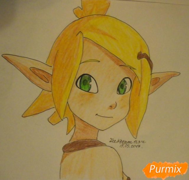 Рисуем длинные эльфийские ушки нашей лучницы.