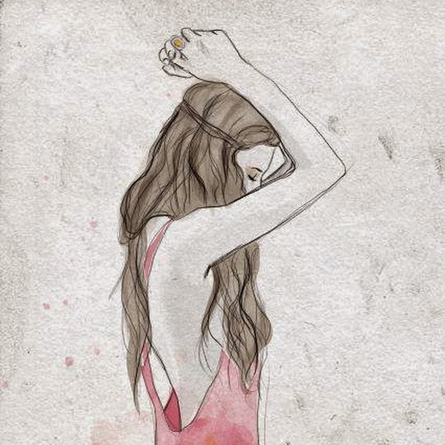 Беря за основу всего описанного выше, нарисуем поэтапно фигурку девушки со спины. Наша девушка молодая, чуть худощавая, она стоит к нам спиной и немного повернувшись, оглядывается. Наша девушка стоит босиком, у нее длинные каштановые волосы. Она одета в легкое летнее платье с открытой спиной.