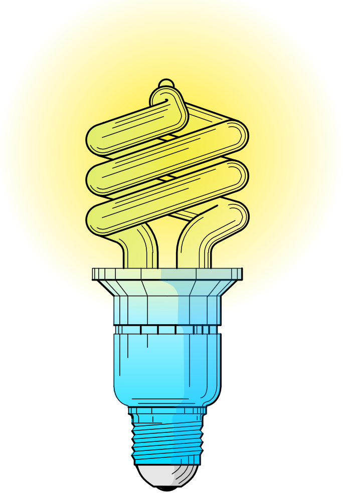 Несмотря на то, что изначально они дороже, в долгосрочной перспективе вы экономите деньги, поскольку компактные люминесцентные лампы потребляют 1/3 электроэнергии и служат в 10 раз дольше, чем лампы накаливания. Одна 18-ваттная КЛЛ, используемая вместо 75-ваттной лампы накаливания, сэкономит около 570 кВтч за свой срок службы. При цене 8 центов за кВтч это означает экономию в 45 долларов.