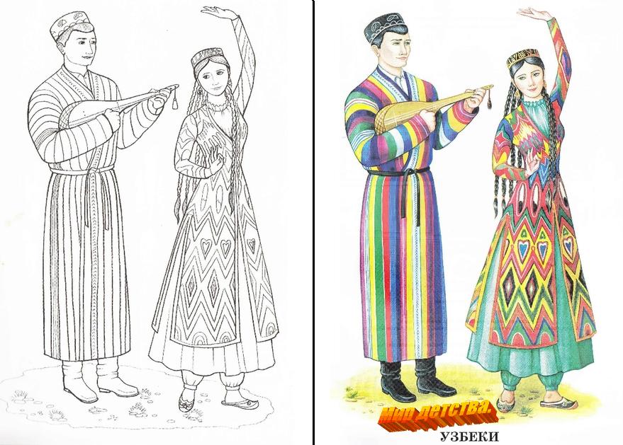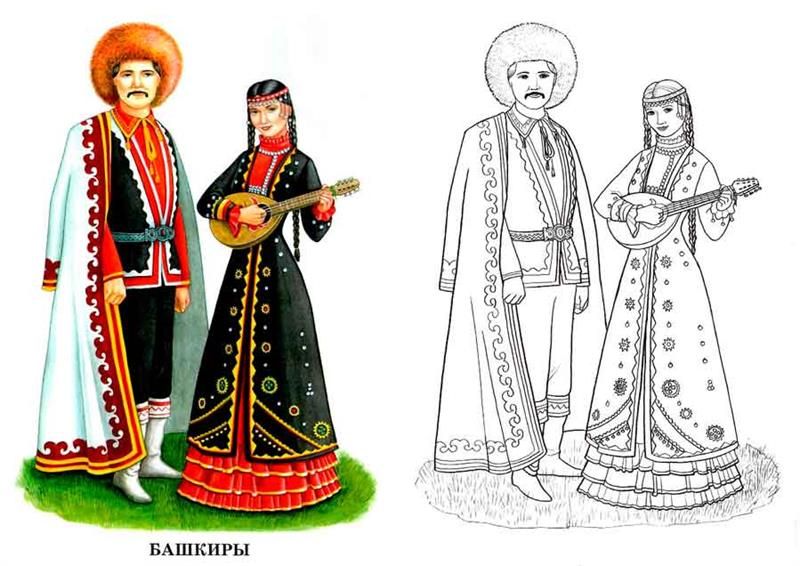 Обязательно приводятся изображения представителей этих и других народов России в национальных костюмах.