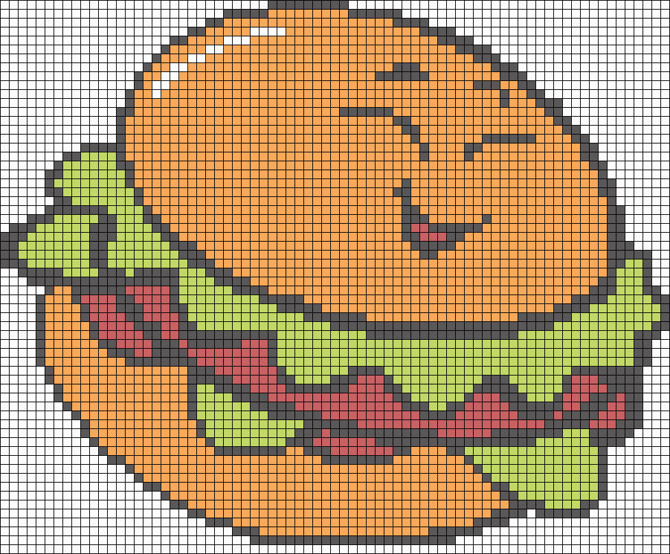 Нужно подобрать образец, взять цветные карандаши листик в клеточку. Считаете, клеточки и раскрашиваете в нужные цвета. Картинки по клеточкам Еда пробудит в вас аппетит, пополните вашу коллекцию схем для рисования по клеточками.