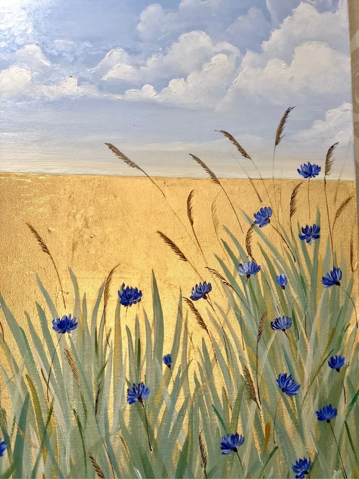 Пшеничное поле под голубым облачным небомПоля и газоны