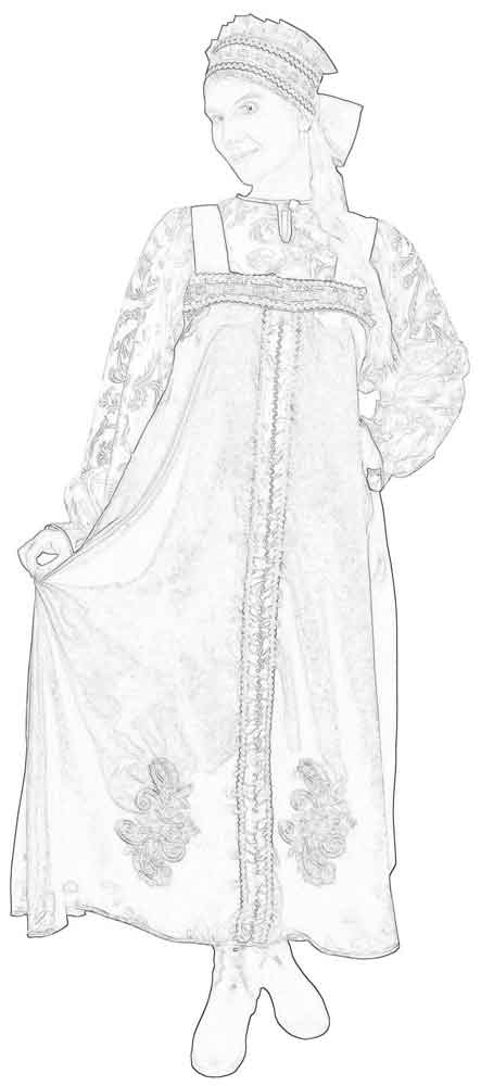 Исконно русским нарядом для девушки является длинный яркий сарафан, который надевали с белой рубахой. Цвет такого сарафана обычно был красным, реже – зеленым или синим. Шили сарафан из льняной или хлопковой ткани, а для знатных дам – из парчи и дорогого шелка.