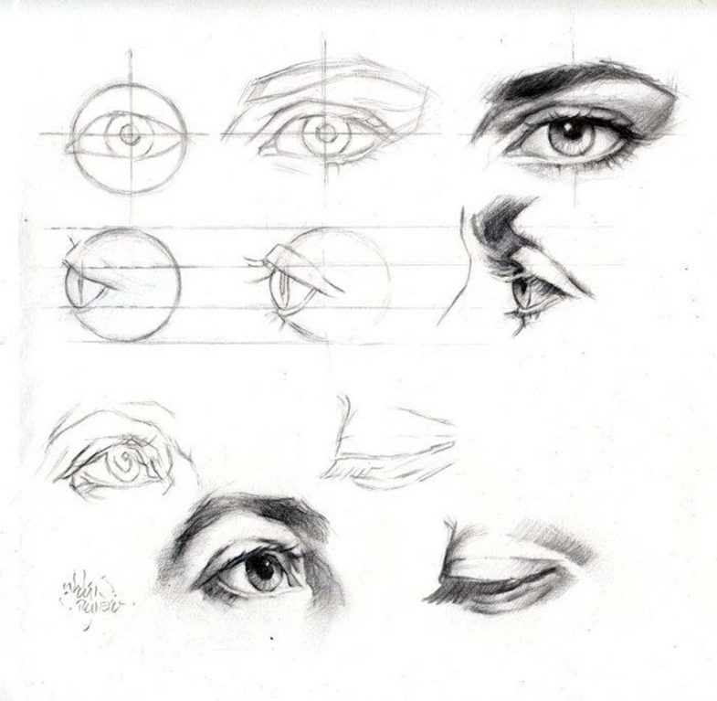 Не смотрите туториалы «как рисовать глаз» — найдите картинки и попробуйте повторить! Повторение и копирование — вот ваш лучший туториал на первых шагах.