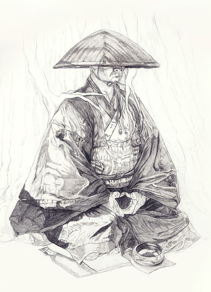 Самурай эскиз карандашом