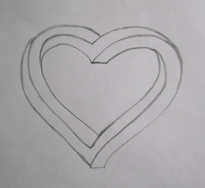 Как нарисовать сшитое ниткой сердце карандашом поэтапно