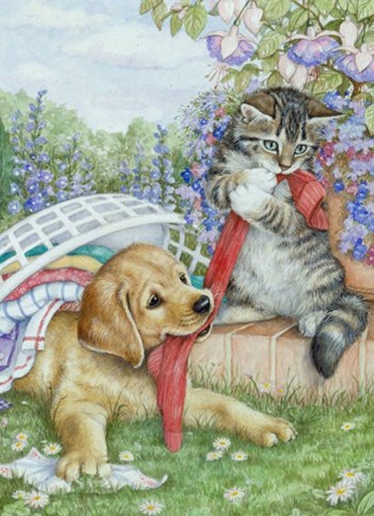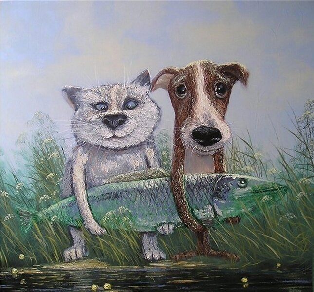Полный рисунок кошки и собакиПерейти к пошаговым инструкциям.