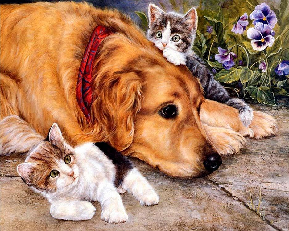 Чаще всего собаки и кошки друг друга на дух не переносят, но встречаются случаи, когда они становятся хорошими и даже преданными друзьями и вполне мирно уживаются друг с другом. Очень редко, но можно увидеть кошку и собаку в обнимку. И если возникает между ними дружба, то поистине крепкая и настоящая.