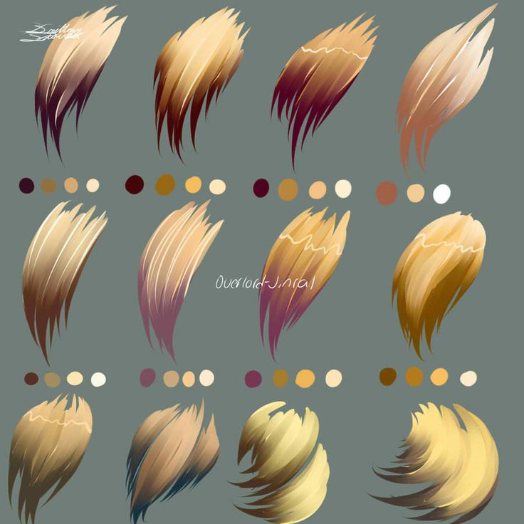 Установите еще несколько слоев в качестве « Обтравочной маски », если вам нужно добавить больше теней. Затем создайте новый слой и установите для него режим наложения « Перекрытие ». Задайте белый в качестве цвета переднего плана, чтобы начать нарисовать теплые блики в тех местах, куда падает свет. Нанесите несколько светлых участков, при этом обращая внимание на то, чтобы они соответствовали логике освещения волос: