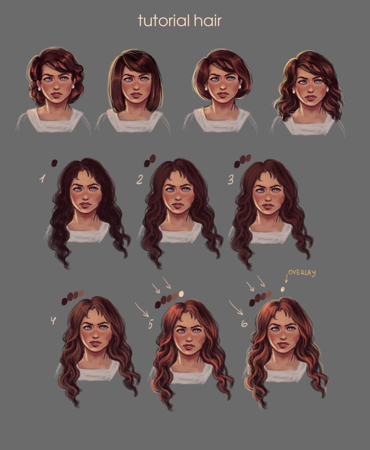 Попытайтесь нарисовать волосы, которые вы раньше не рискнули бы изобразить, и изучите различные узоры локонов, которые будут выглядеть интересно: