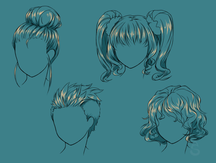 Принимая это во внимание, можно сказать, что человек, у которого со всех сторон из прически выпадают прядки волос, беззаботен (или небрежен?). Я думаю, последний этап — единственный, где вам нужно рисовать отдельные волоски. Это — последние штрихи. И на этом. вуаля! Волосы готовы! Теперь заканчивайте читать и бегите рисовать!